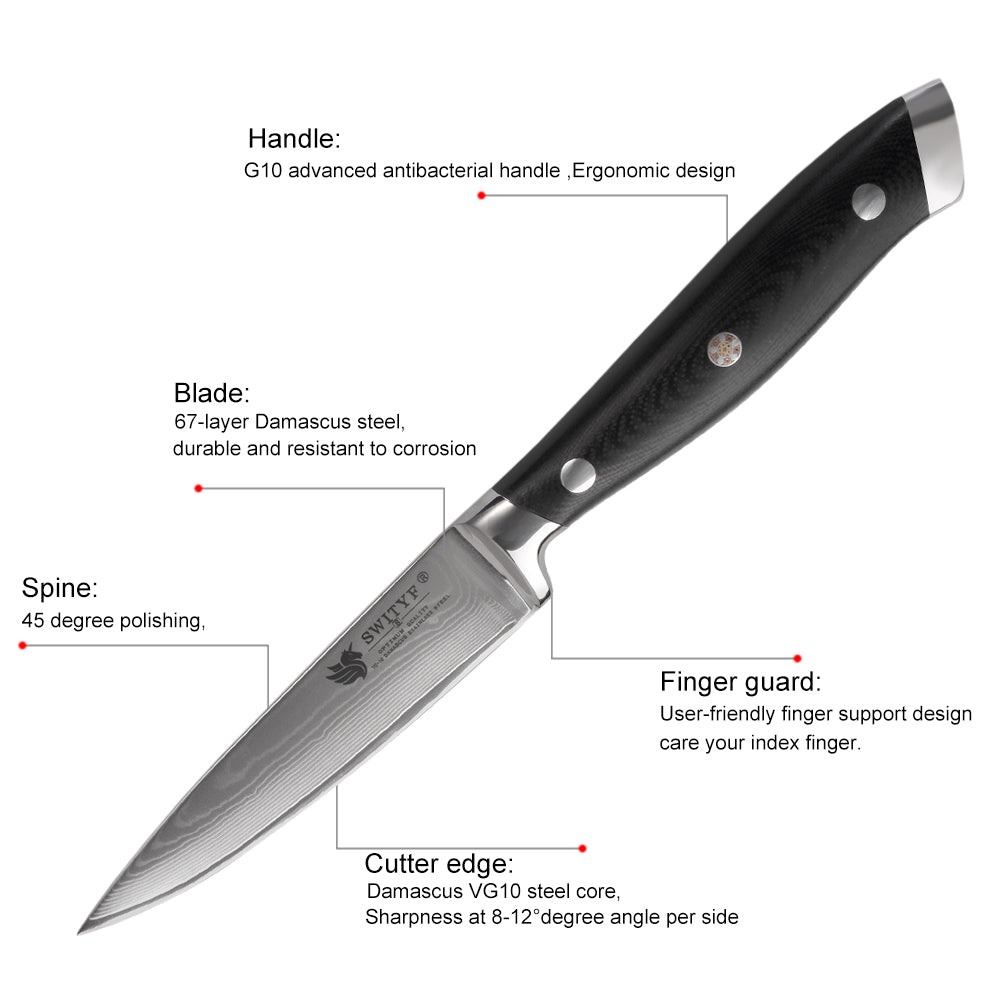 Damascus Stainless Kitchen G-10 Handle Fruit Paring Knife