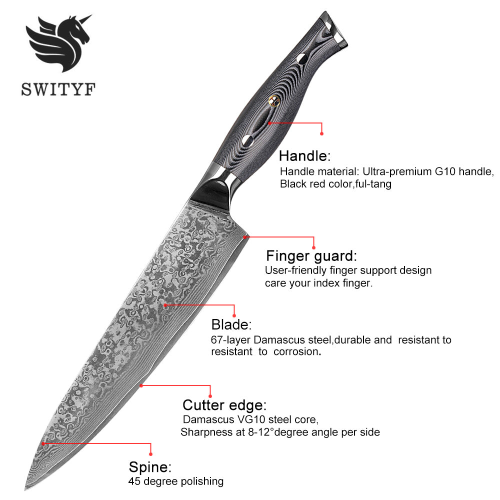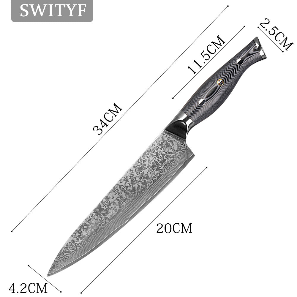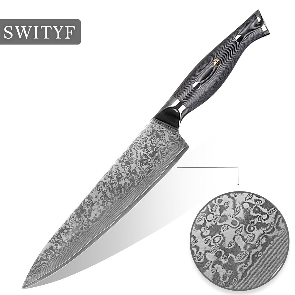 Professional 8-inch Chef VG-10 Damascus Steel Kitchen Knife of Balck Handle